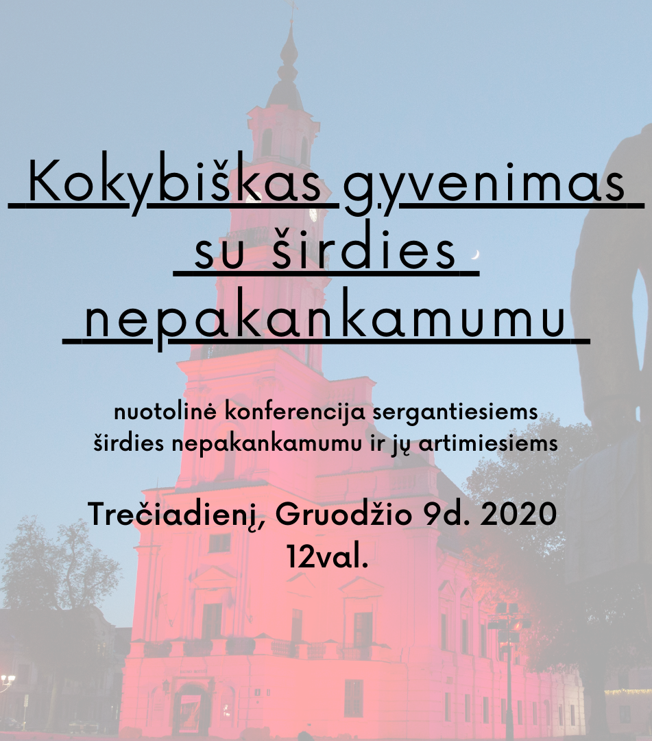Nuotolinė konferencija “Kokybiškas gyvenimas su širdies nepakankamumu” – tai paskutinė 2020ųjų metų nuotolinės veiklos iniciatyva ir yra skirta visiems širdies nepakankamumu sergantiesiems ir jų artimiesiems, bei globėjams.
